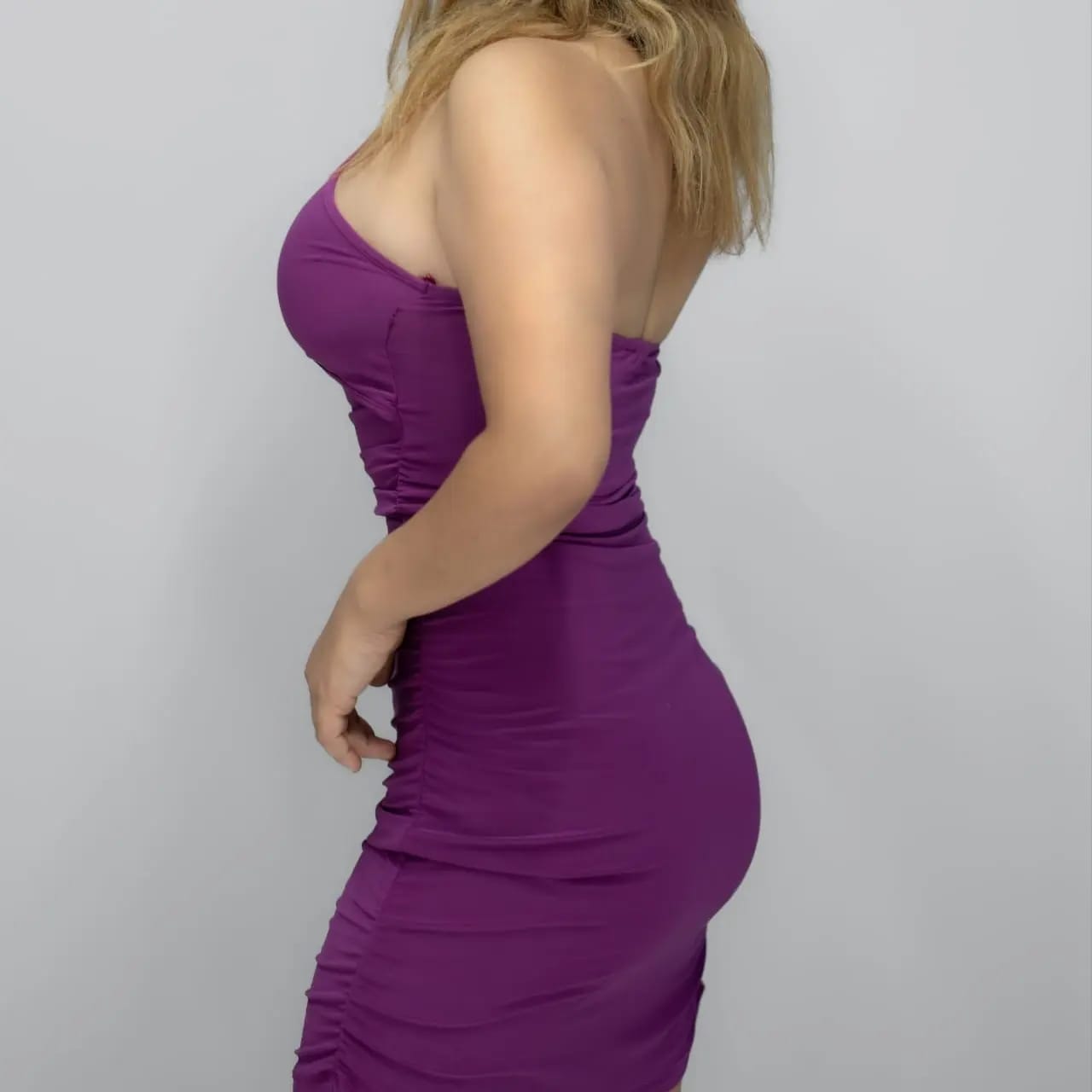 mor boynundan zincirli mini elbise